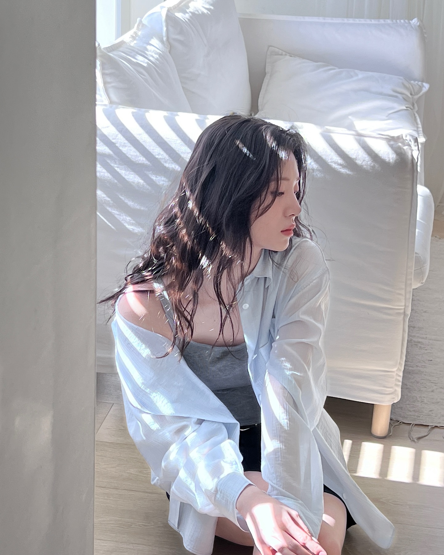 ✔ 캐주얼한 셔츠도, 그녀가 소화하면 묘하게 분위기 있다.